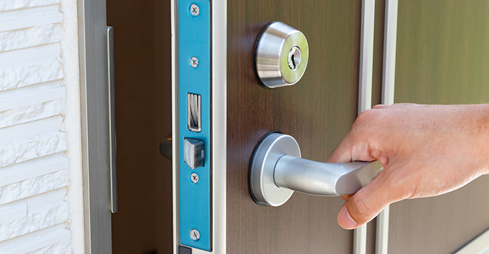また、玄関ドアに取り付けられる錠にも種類があります。マンションやアパート、オフィスビルなど多く使われているのは、ドアノブやレバーが一体になったケースロックと呼ばれる錠前、ハンドルを押し引きして開閉するプッシュプル錠、ドアノブとシリンダーが一体になったインテグラル錠、手元の突起部分を下げて開閉するサムラッチ錠(装飾錠)、室内側に錠ケースが露出している面付箱錠などが一般的です。